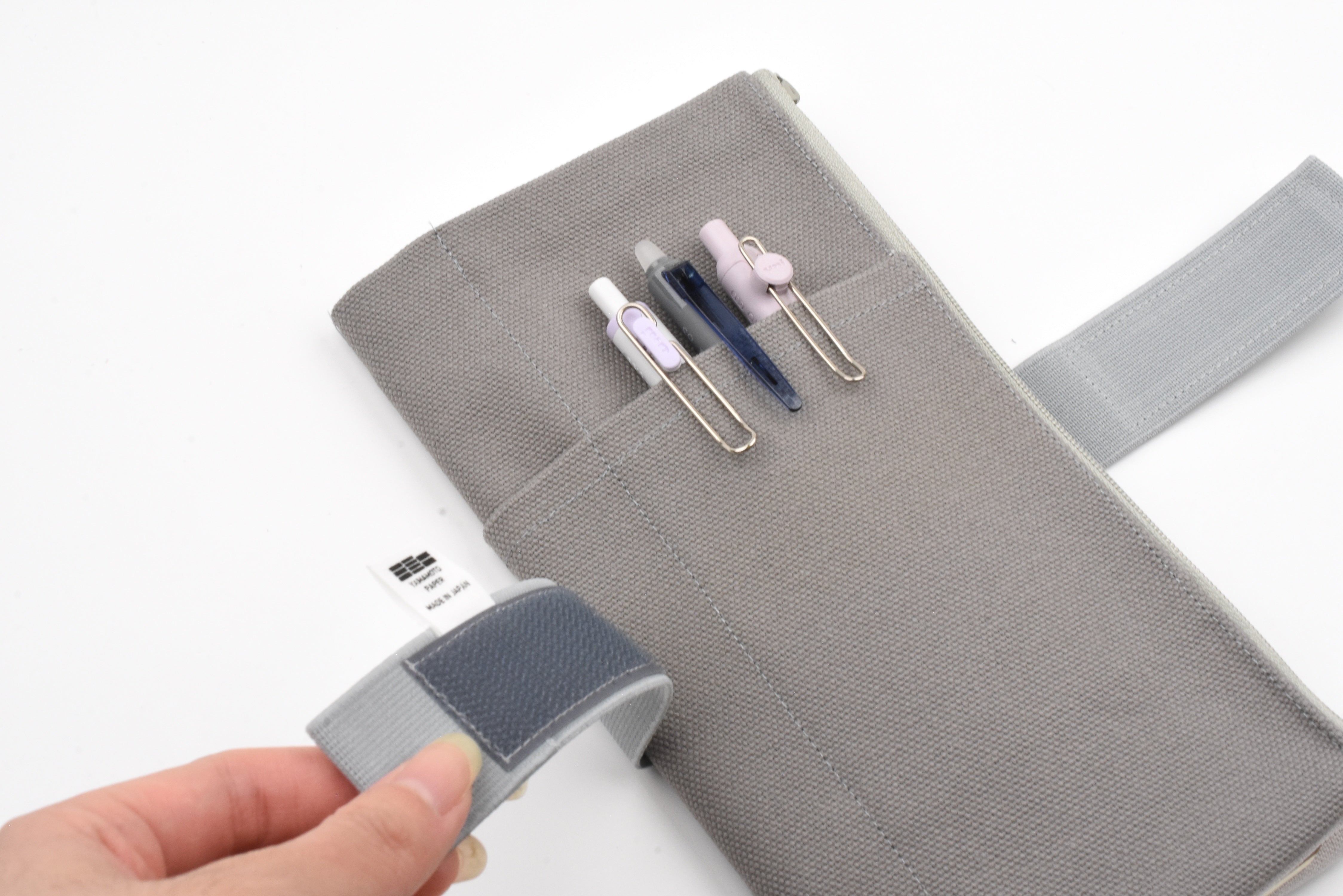 The canvas covers are made from a durable organic cotton and include a large zip pocket perfect for small accessories; the exposed front and back pockets allow for additional storage and versatility. The book band with Velcro fastening is not attached to the cotton cover, making it removable and easily adjustable to fit multiple inserts. Two connecting bands are included, allowing one to hold up to three inserts together.