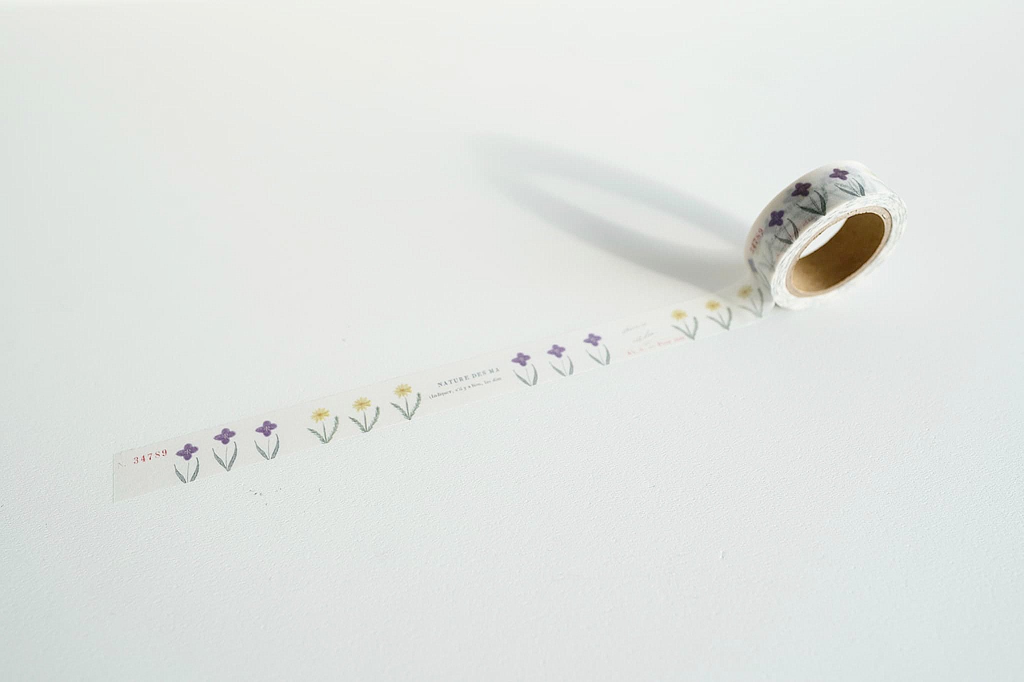 "This is my favorite material that I made last fall. I completed this design last fall, but I wanted to create a spring masking tape, so I tried it again in February. I've always loved flowers, and I've always thought it would be nice to display them like in a flower shop someday. These flowers evoke a sense of nostalgia, and the masking tape has a gentle atmosphere." -by creator Yohaku