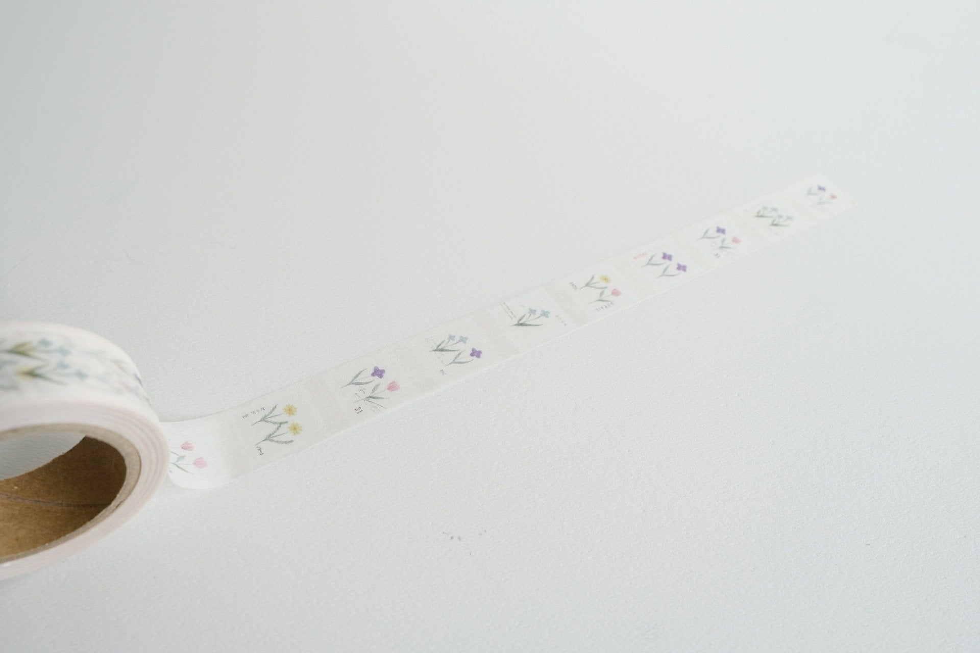 "A row of stamp designs featuring flowers—spring is the season when flowers are at their most beautiful. Not only the flowers in florists' shops but also those blooming in neighborhood gardens and along the roadside are all sparkling and captivating. I can't wait for spring to come. I want a masking tape like this, one with a gentle atmosphere." -by creator Yohaku