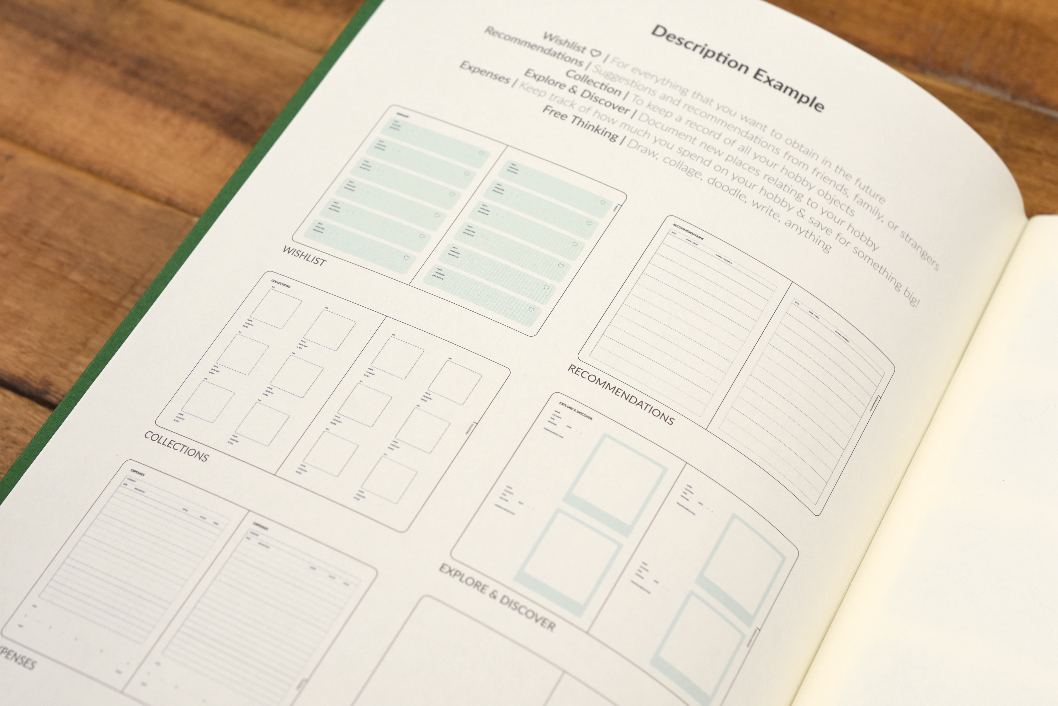 This notebook is specially designed by Yoseka Team Members Ashley and Selena to keep track of all things related to your favorite hobbies. It comes with a Wishlist for everything that you want to obtain the future, a Recommendations page with suggestions from friends, family, or strangers, a Collections page to keep a record of all your hobby objects, an Explore & Discover page for documenting new places relating to your hobby, an Expenses page to keep track of how much you spend and to save up for something big, and a Free Thinking space for doodling, collaging, drawing, and writing.