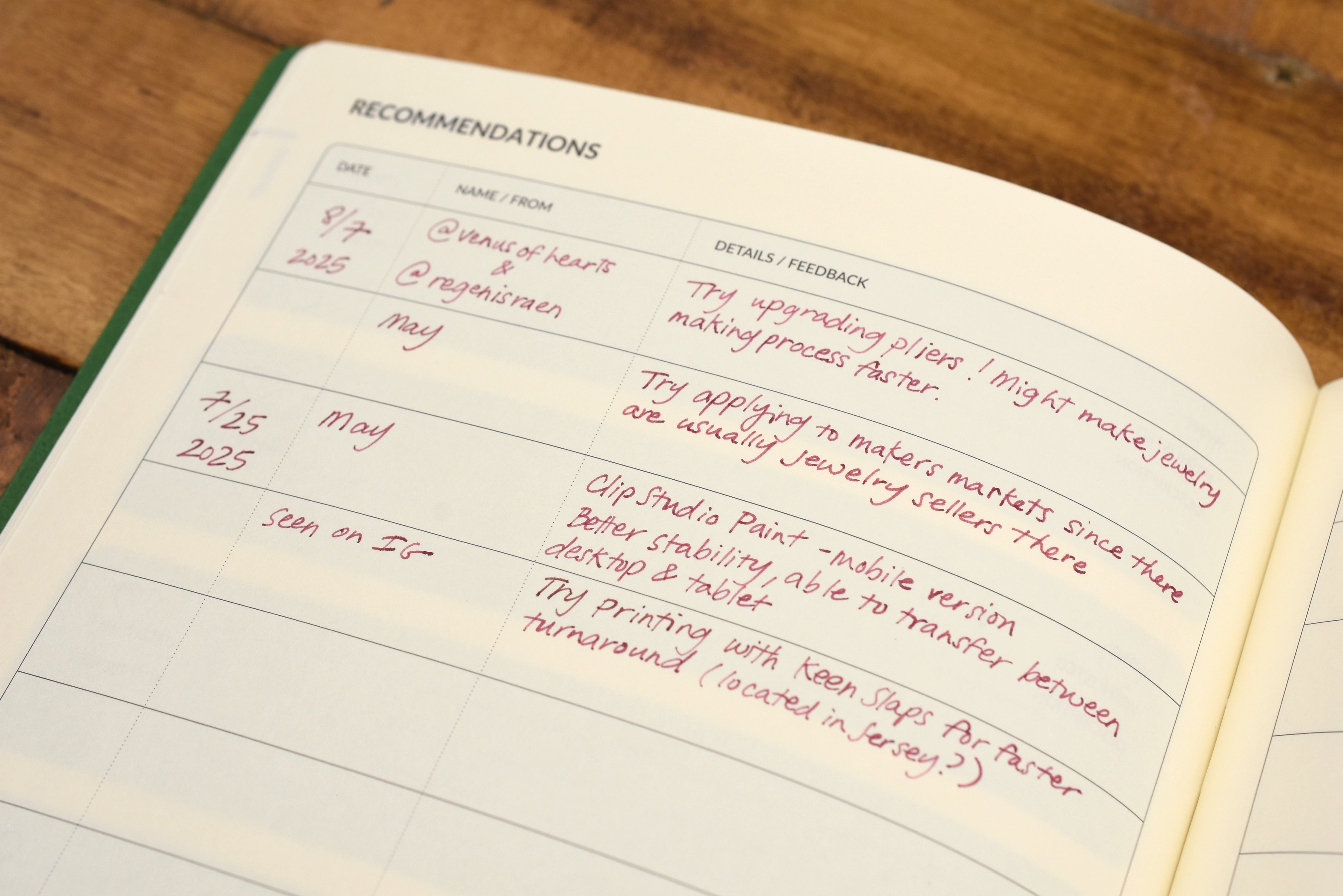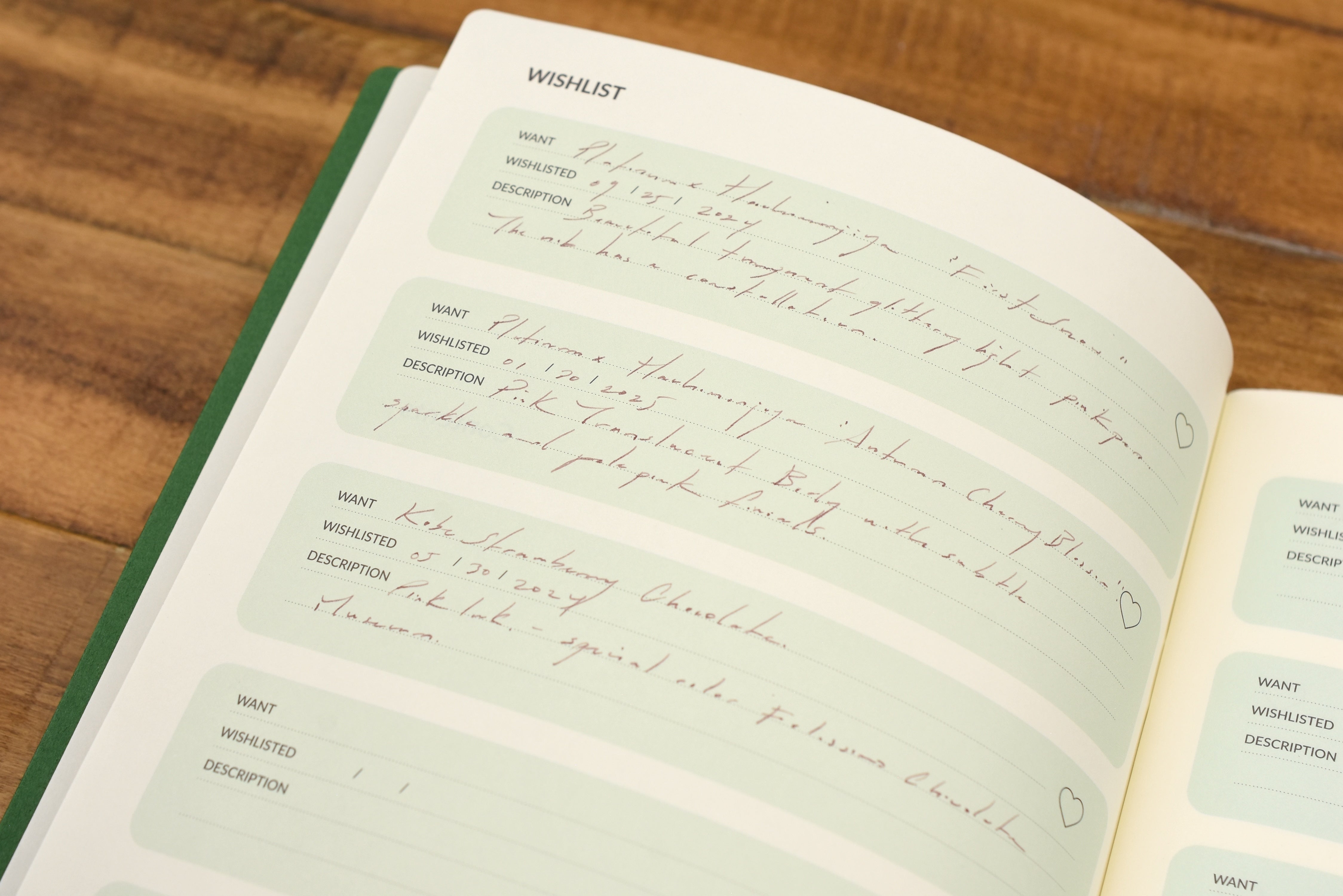 I just had to pick up the Hobby Life book in store after seeing the YouTube videos and everything that went into it! Personally, I don't love the Recommendations section, because I can just put those things on the Wish List. So I ended up using the Recommendations section to keep track of my fountain pen inventory. I'm using the Collections section for my Ink inventory. I'm not sure if I'll end up using the Expenses section, but I like that it's there. The paper quality is okay. Many of the fountain pens do ghost or even bleed through, so for this particular hobby, it might need better quality paper and I'd pay more for that. Otherwise, the current price of $15 is super accessible and I absolutely love the concept of having a special notebook to keep track of my hobbies. Kudos to you all for coming up with this idea!
