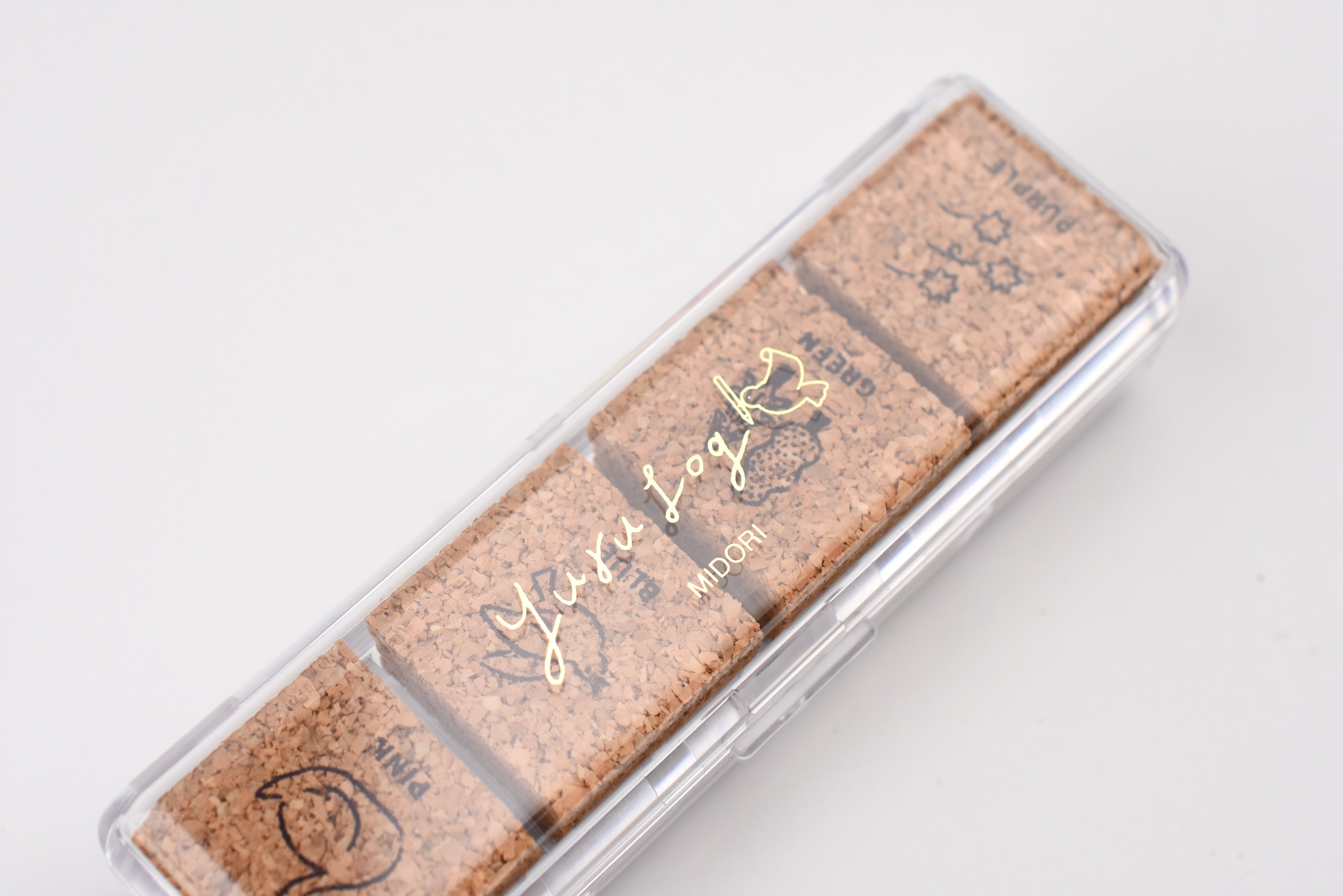 Yuru Log is a series created to help anyone record their daily life in a relaxed, enjoyable way—“Yuru” meaning “relax” and “Log” meaning “record.” This stamp set includes four soft-toned colors that create clean impressions you can write over with water-based markers and pens. Each stamp features a comfortable cork body for cushioned stamping. The set comes in a transparent case for easy storage, and its compact size makes it convenient to carry in any pouch.