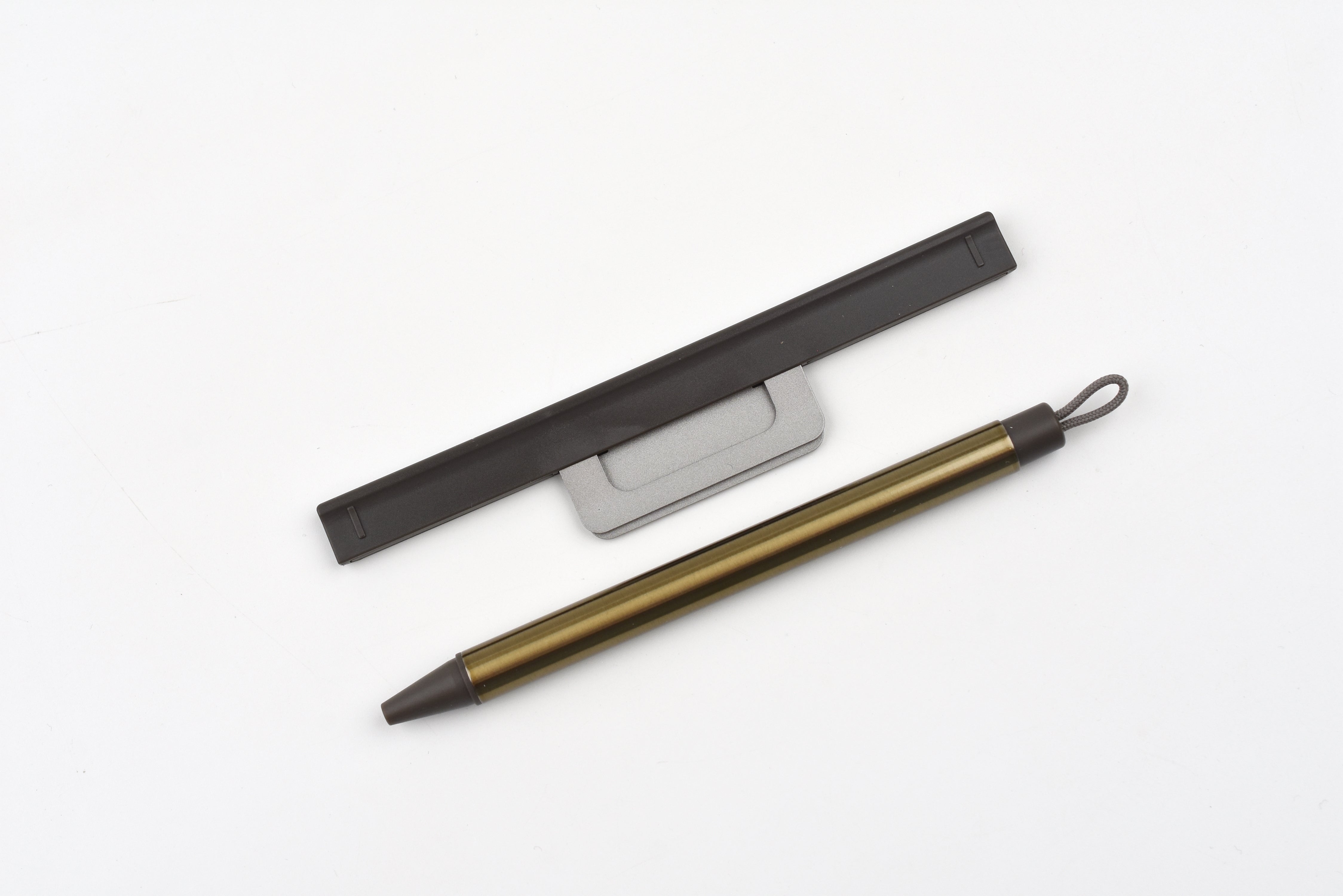 The Zebra Pitan Gel Pen is a sleek, award-winning pen designed for seamless notebook attachment. Each pen comes with a slim magnetic holder that clips onto your notebook, with a protective plastic sheet to prevent indentations. The holder’s gently curved design includes a raised edge and two small ridges on either end, ensuring the pen stays securely in place while allowing for quick and easy magnetic removal.
