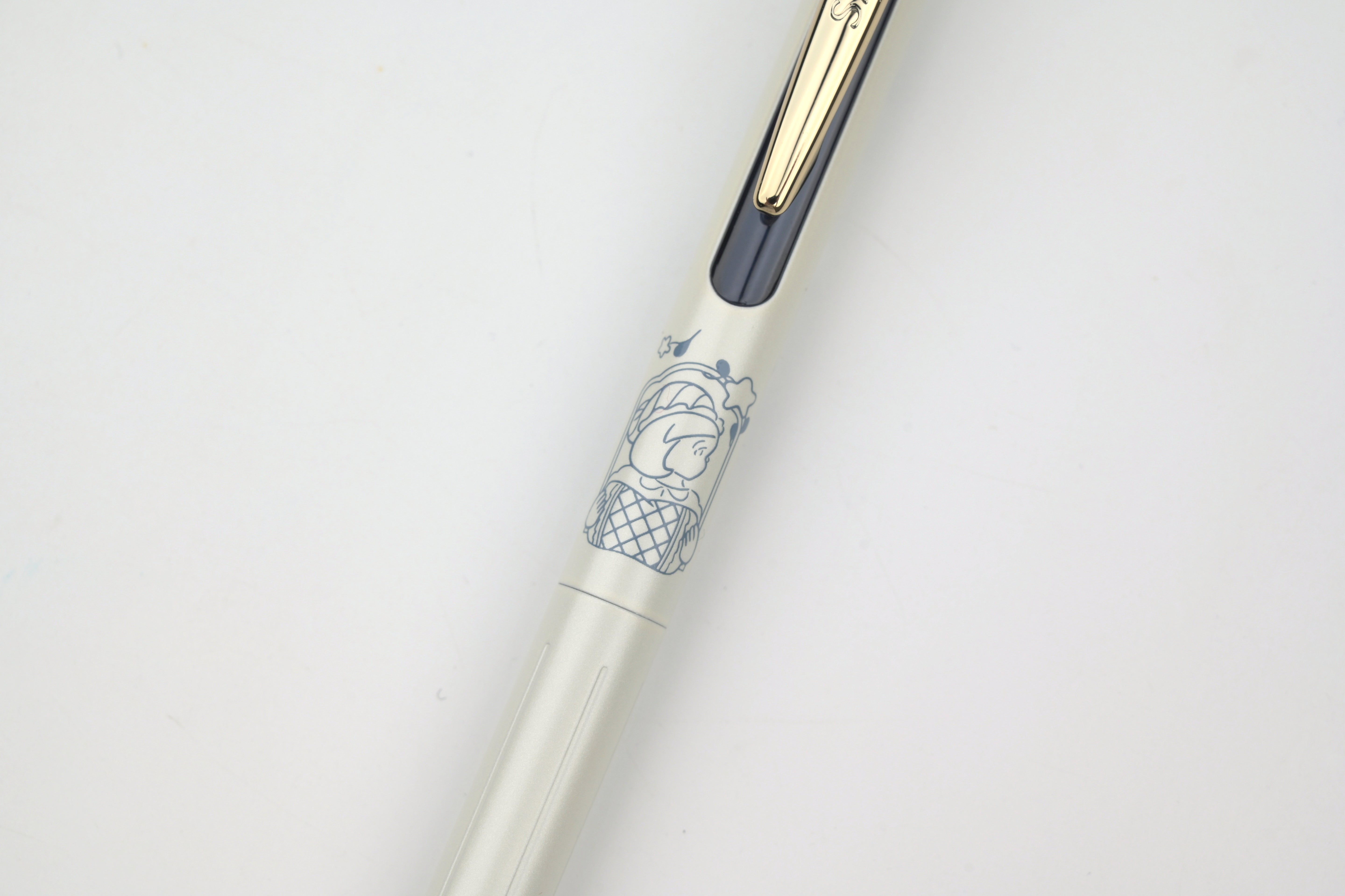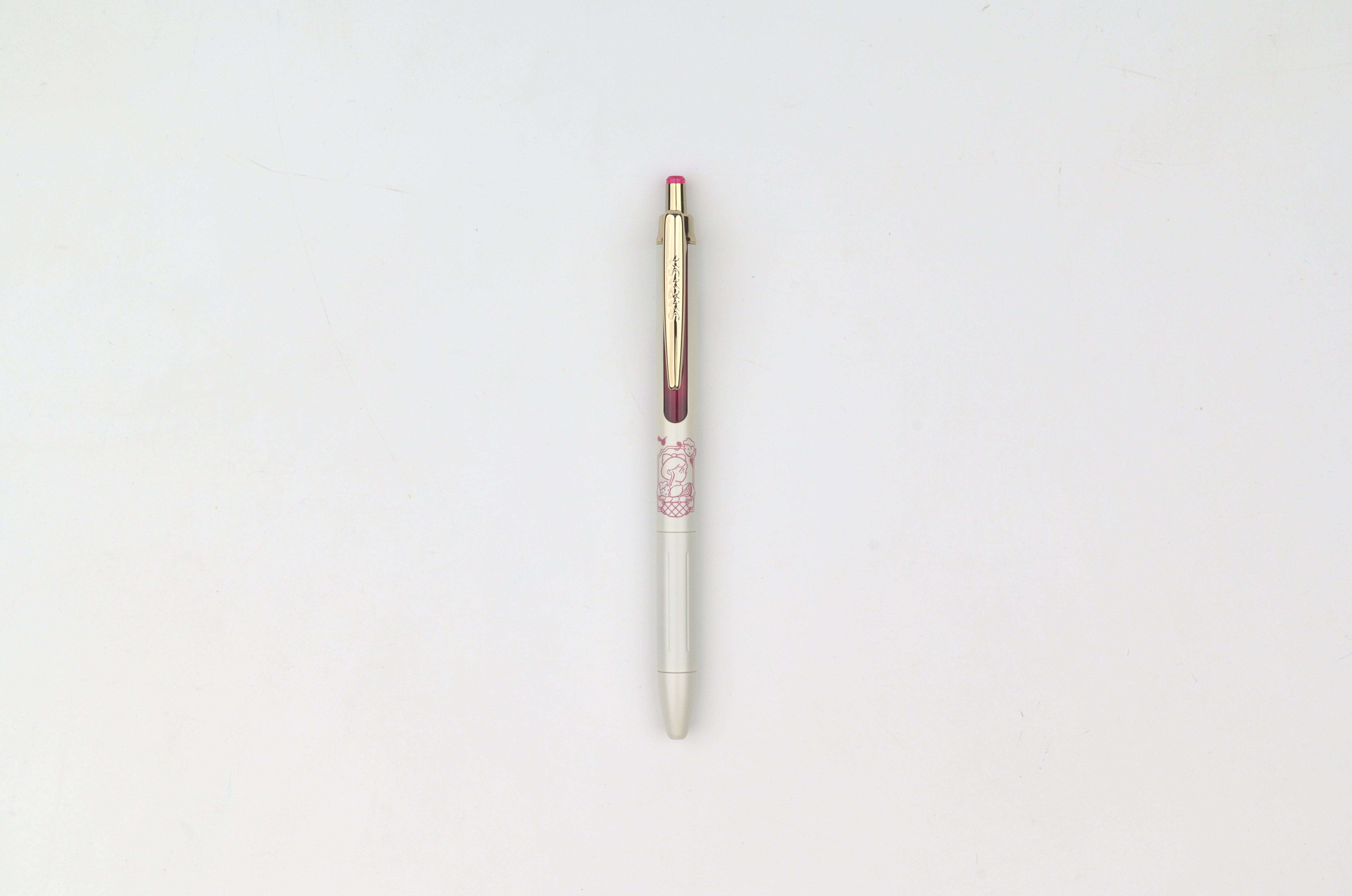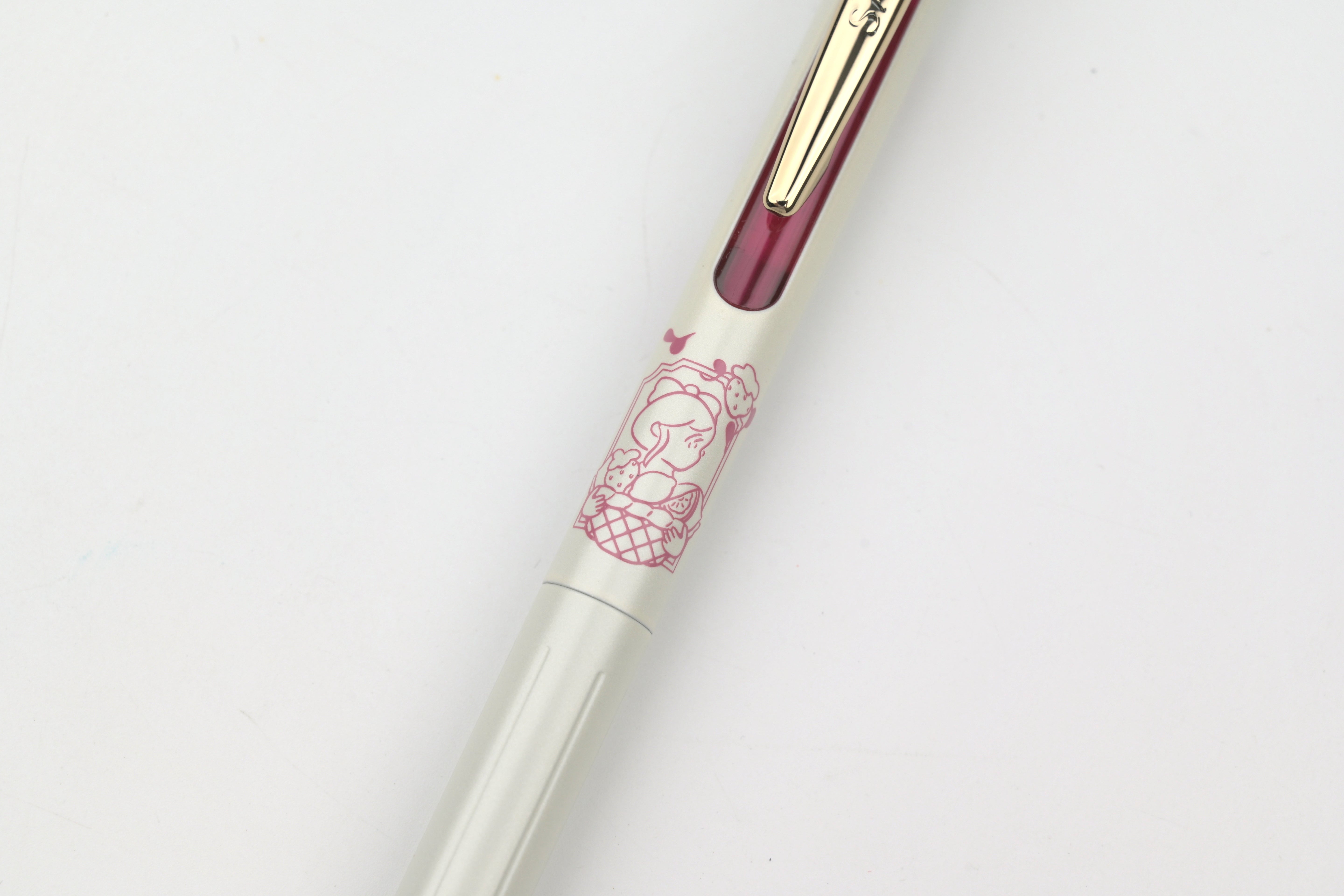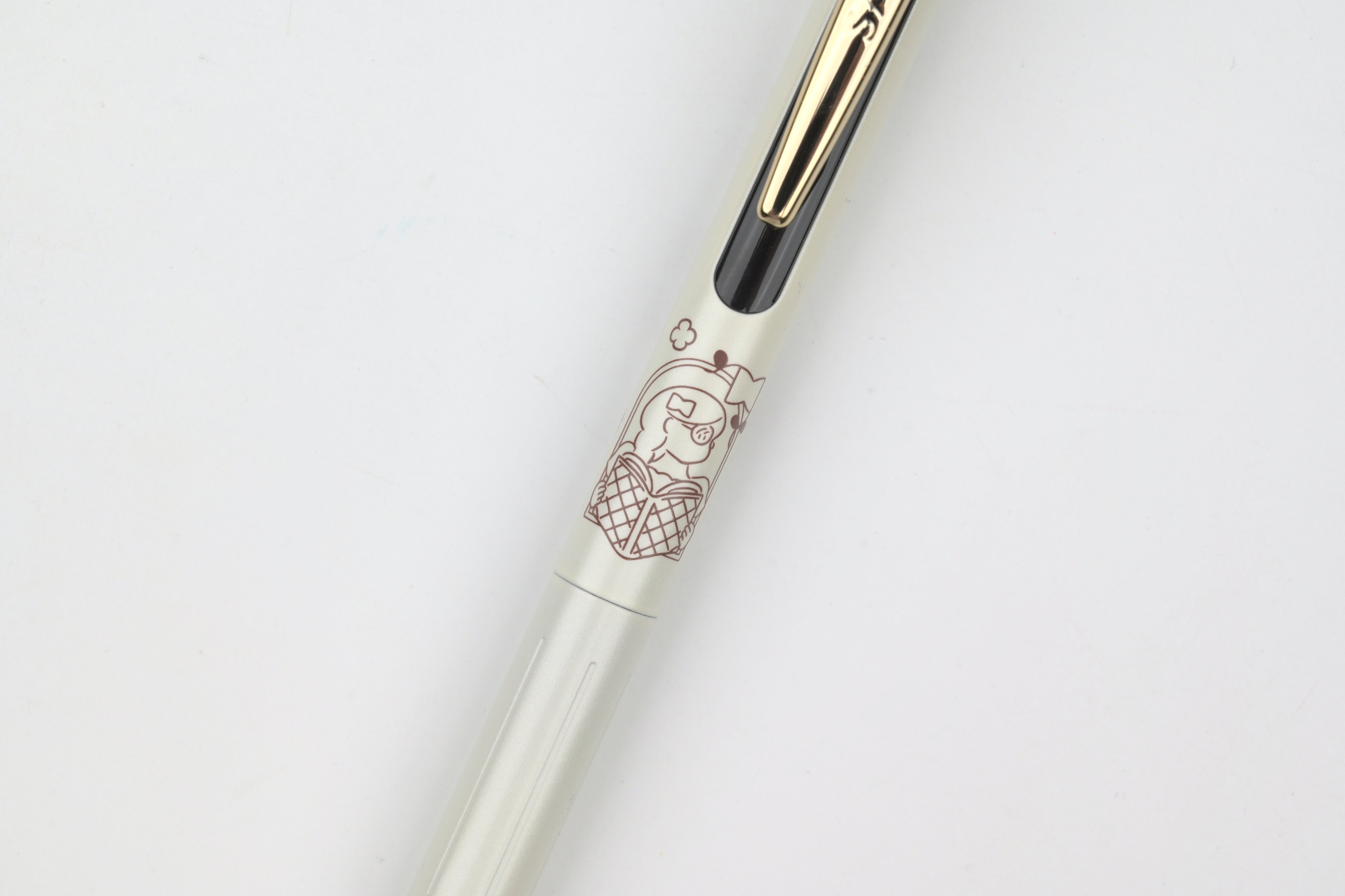 A collaboration between Zebra and illustrator Heisuke Kitazawa, these limited edition “My Little Joy” pens pair softly colored, storybook-like illustrations with a clean white barrel that beautifully highlights the artwork. Each design features a unique illustrated character, while the gold clip and vintage-toned inks bring a refined, luxurious feel. Each pen has a different color ink that matches the color accent of the body.
